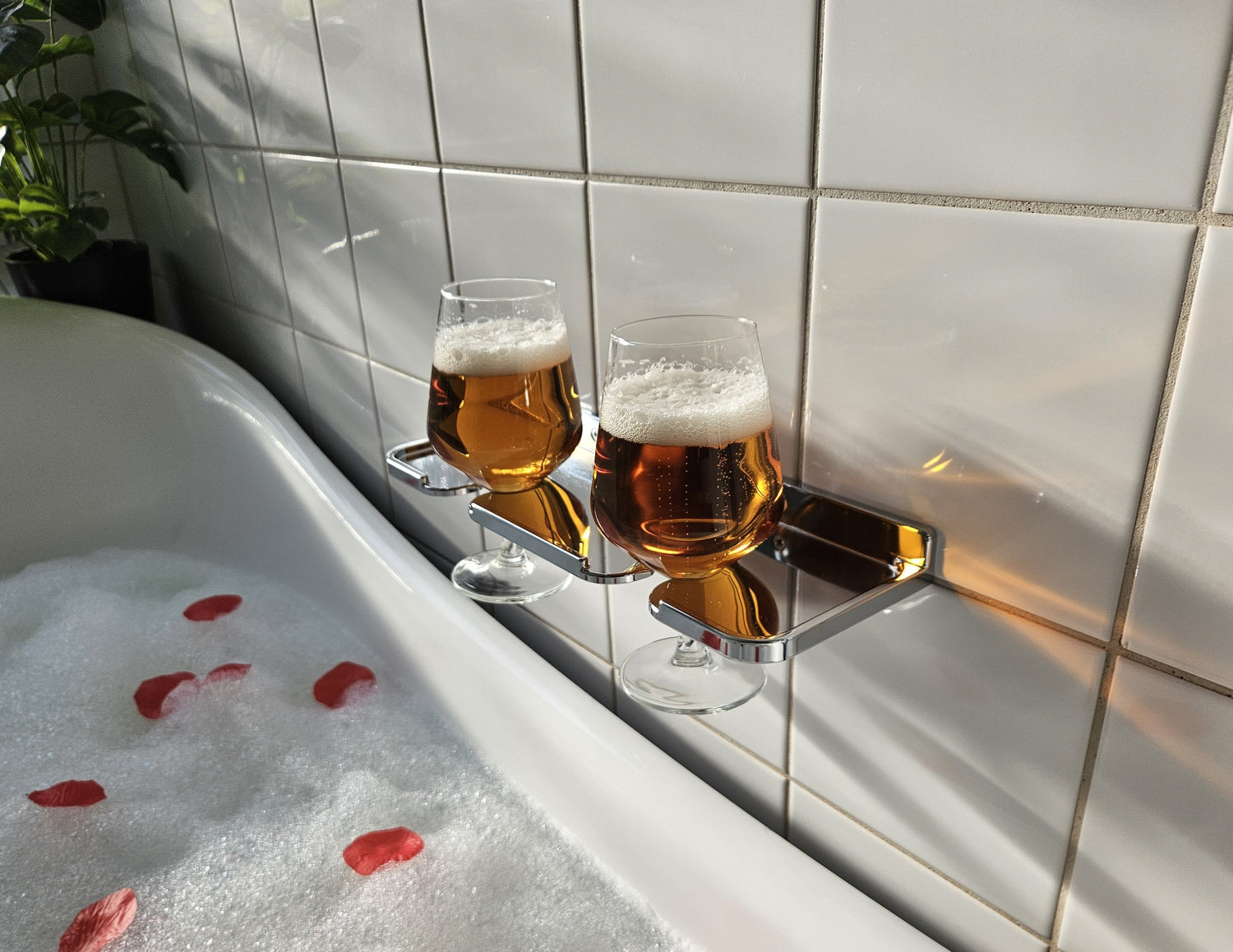 Bring luxury and convenience to your bath or boating experience with this versatile dual glass holder. Ideal for keeping drinks steady in the bathroom or on a rocking boat. With multiple finishes available to suit any decor.